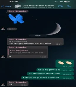 O grupo, denominado “Ciro Vitor Haran Danilo”, reunia o senador, os dois empresários e Victor Linhares de Paiva, conhecido como Vitinho, ex-assessor de Nogueira e também denunciado pelo Ministério Público do Piauí. Apesar de as conversas utilizarem mensagens temporárias, capturas de tela salvas por um dos integrantes permitiram o acesso parcial ao conteúdo pelos investigadores.