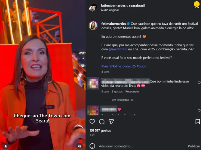 Fatima Bernardes fez propaganda da Seara no The Town — festival também patrocinou show com cantoras brasileiras e MAriah Carey em Belém no pré-COP (Foto: Reprodução)