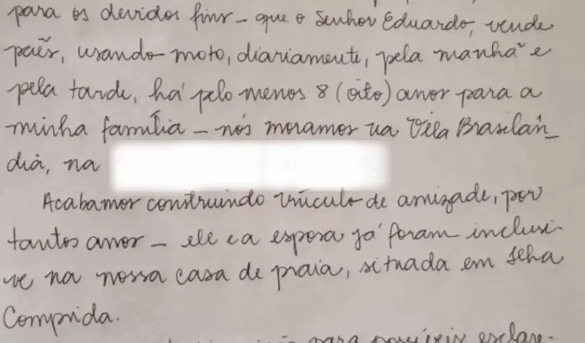 Clientes atestaram com depoimento a próprio punho que Eduardo trabalha vendendo pães | Foto: Reprodução