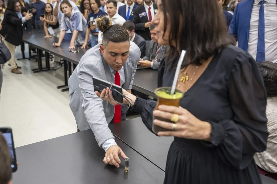 “Durante a sessão em que seriam votados projetos profundamente prejudiciais ao povo da cidade, como a privatização da atividade de saneamento do Dmae, o projeto que criminaliza quem ocupa imóveis pelo direito à moradia e a proposta que ataca o trabalho digno de catadores e catadoras, manifestantes foram impedidos de acessar o plenário para acompanhar o debate público”, diz a nota da oposição. “O ato era pacífico, composto por mulheres, crianças e idosos, que buscavam exercer seu legítimo direito à participação popular. Ainda assim, houve ordem direta da presidente da Câmara, vereadora Comandante Nádia (PL), para impedir a entrada dos manifestantes, mesmo sob sol forte. Enquanto vereadores da oposição negociavam permitir que mulheres, crianças e idosos entrassem apenas para se proteger do calor, a ROMU (Ronda Ostensiva Municipal), subordinada à Secretaria de Segurança do Governo Melo, foi acionada e iniciou uma ação de repressão violenta”.