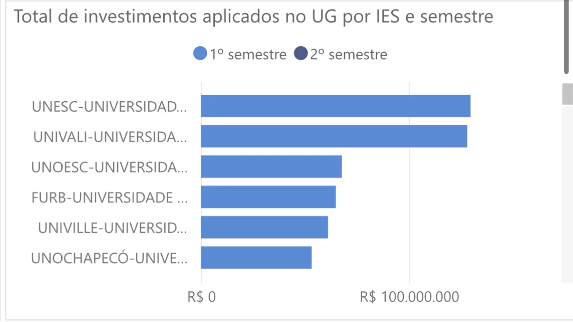 É a primeira vez que a Unesc atinge o topo dos investimentos em um período letivo. Em 2023, 2024 e 2025 a Universidade do Vale do Itajaí (Univali) era sempre a principal beneficiada. O fato ocorre menos de um ano depois de a reitora licenciada da Unesc, Luciane Ceretta, assumir a pasta da Educação no Estado.